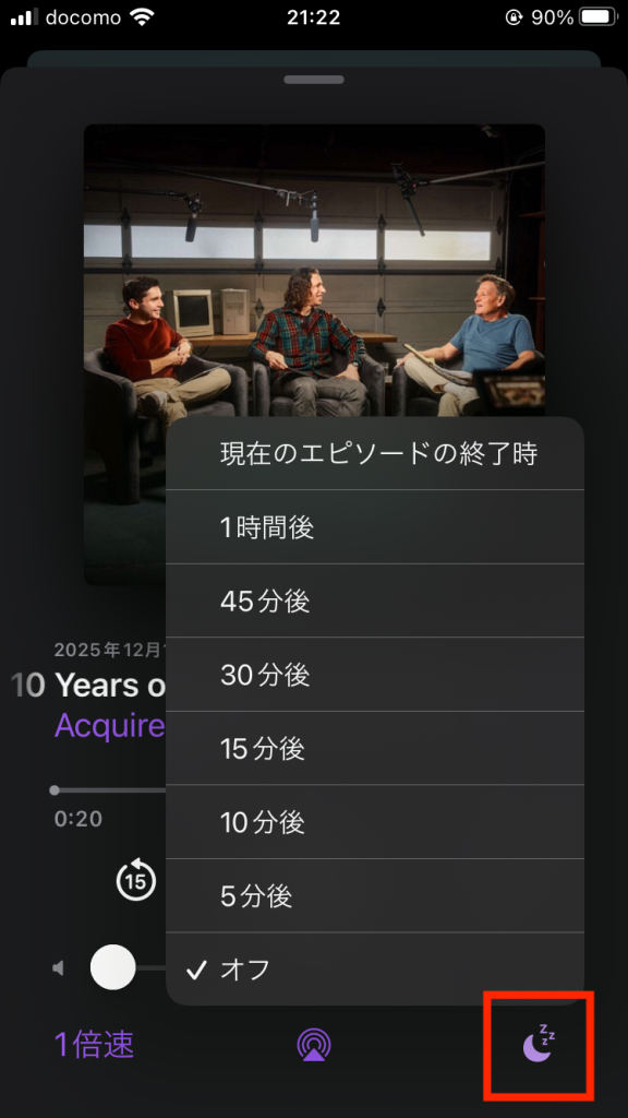 Apple Podcastでのスリープタイマー設定